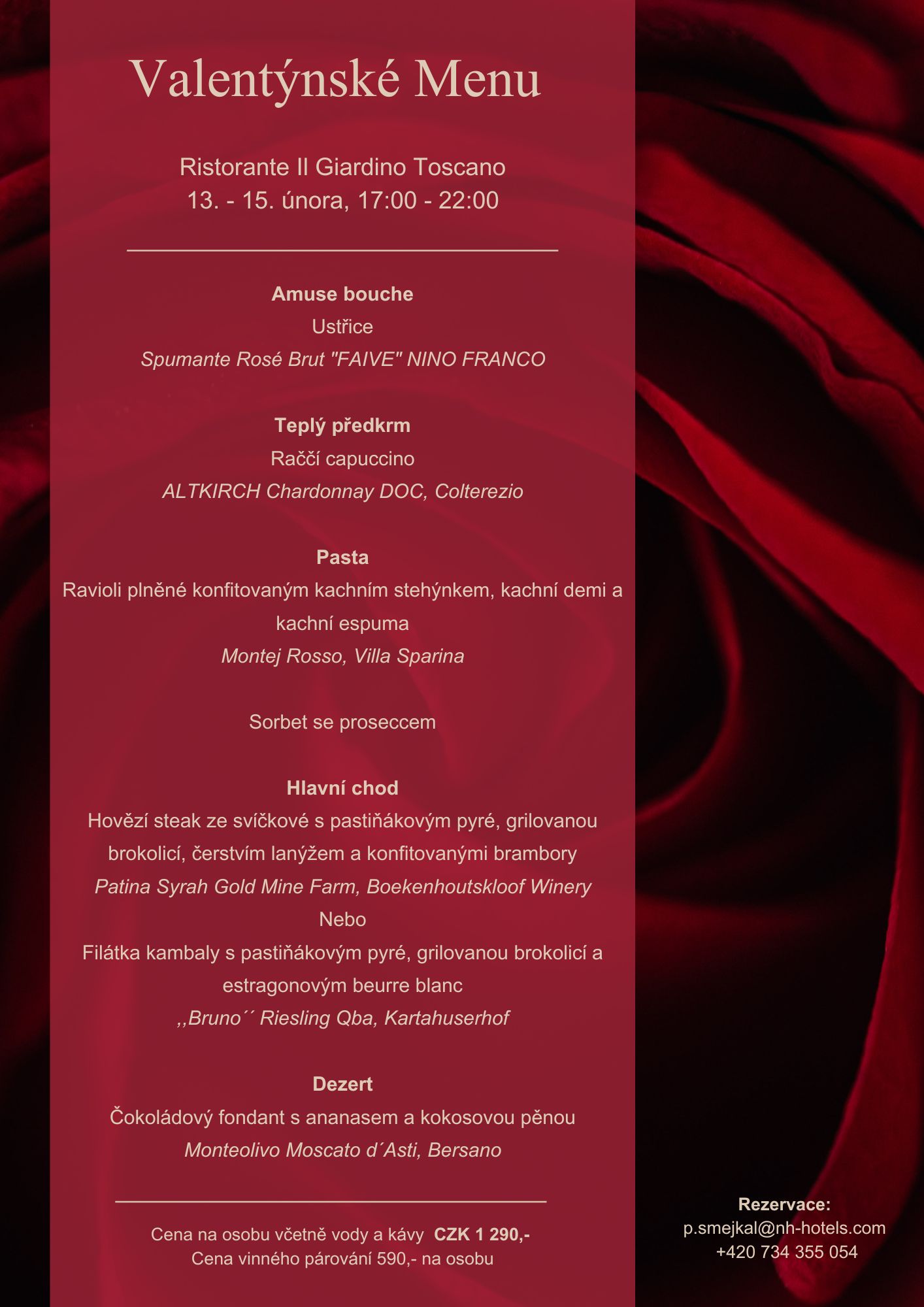 CENA MENU NA OSOBU 1290 Kč / VINNÉ PÁROVÁNÍ 590 Kč