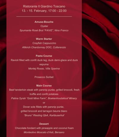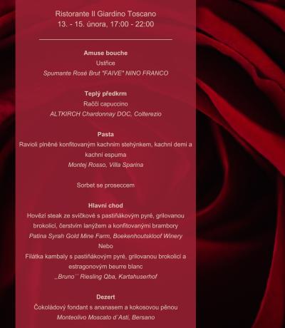 Na pětichodové degustační menu včetně vinného párování se můžete těšit od 13. do 15. Února.