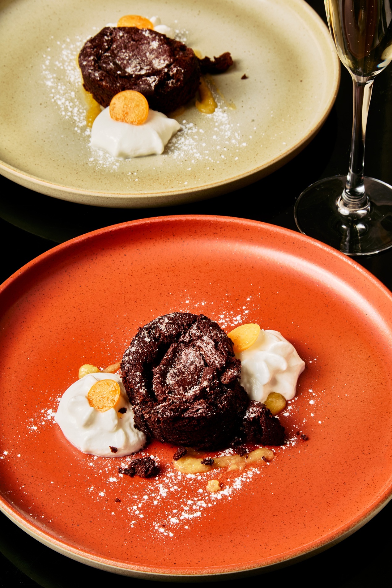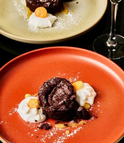 Čokoládový fondant s ananasem a kokosovou pěnou